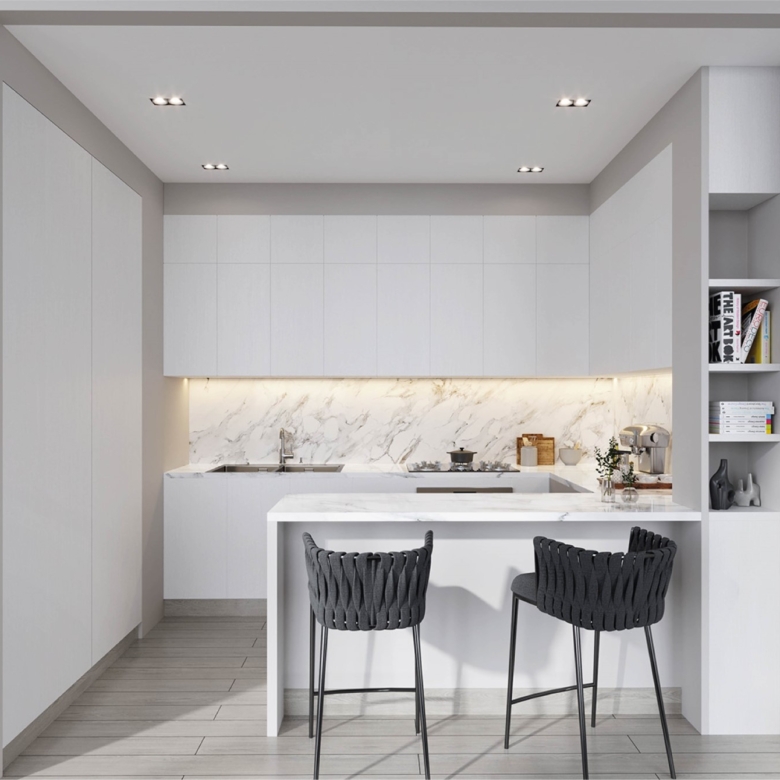 جميع الوحدات السكنية لها أسقف بارتفاع 3.2 متر، مما يضيف لمسة من الأناقة وتجعل الوحدات تبدو أكبر