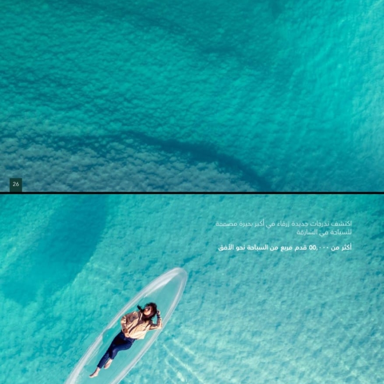– أكبر بحيرة سباحة كريستالية في الشارقة (50,000 قدم مربع)