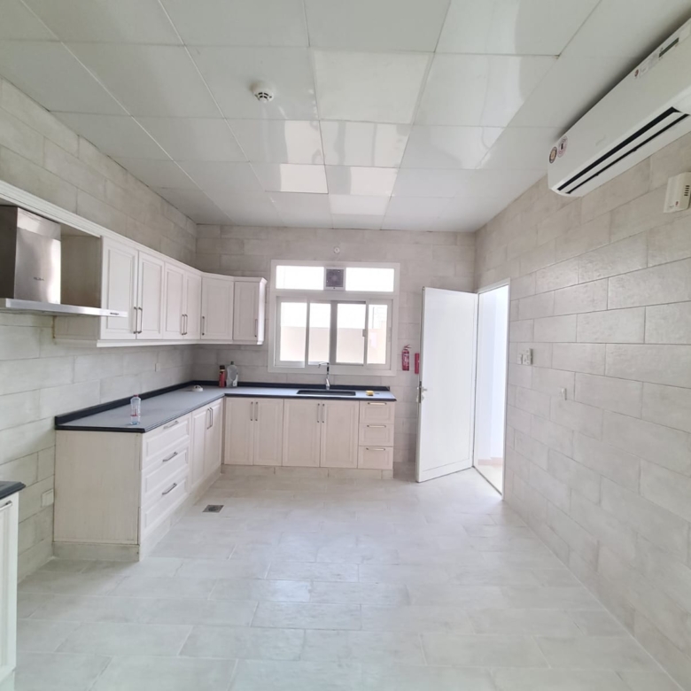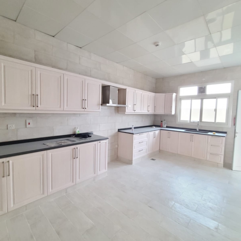 * مطبخ مغلق واسع مع خزائن علوية وسفلية