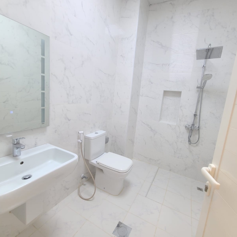 * صالة فسيحة بتصميم مفتوح مع حمام