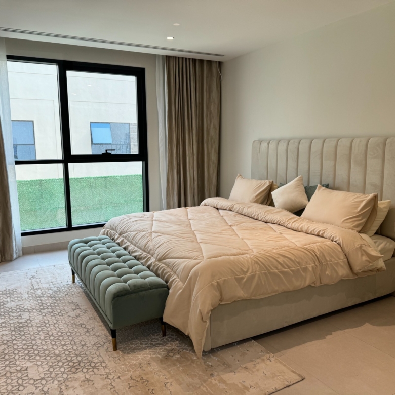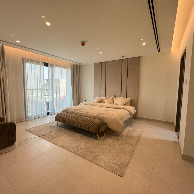 الأول : مجلس صغير و أربع غرف نوم ماستر مع بلكونه لغرفه واحده